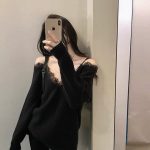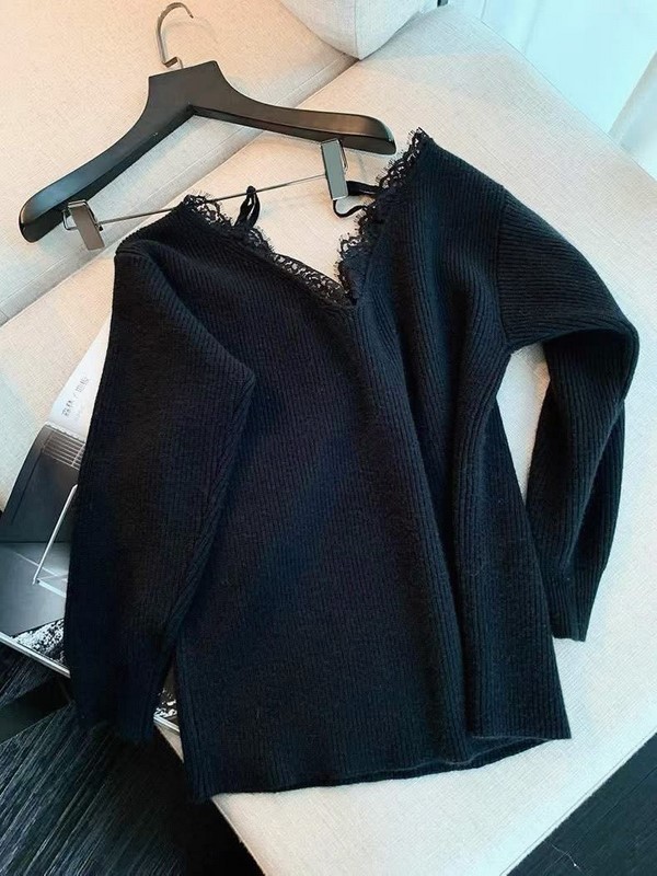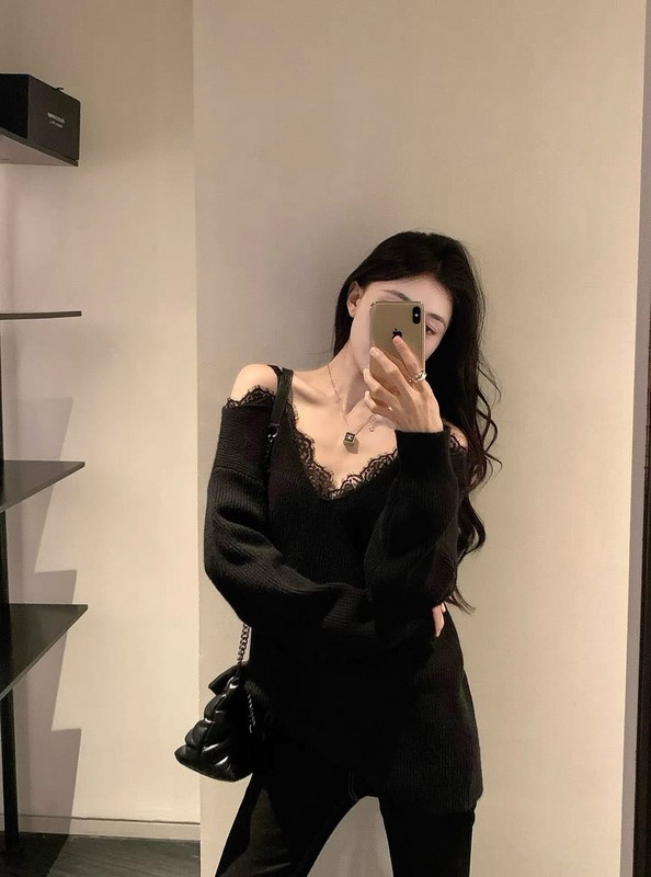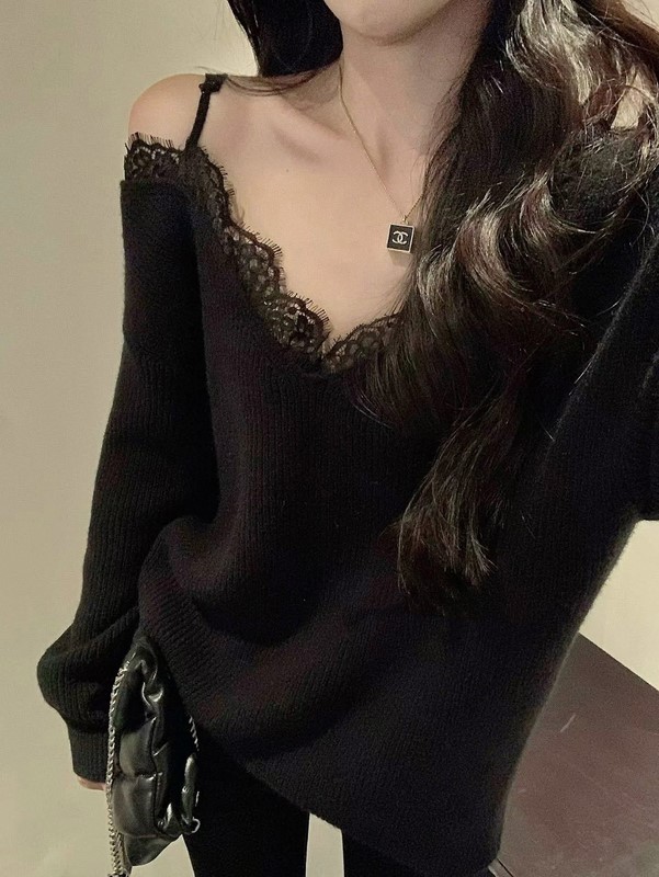 B2003-韓國睫毛蕾絲露肩針織 數量