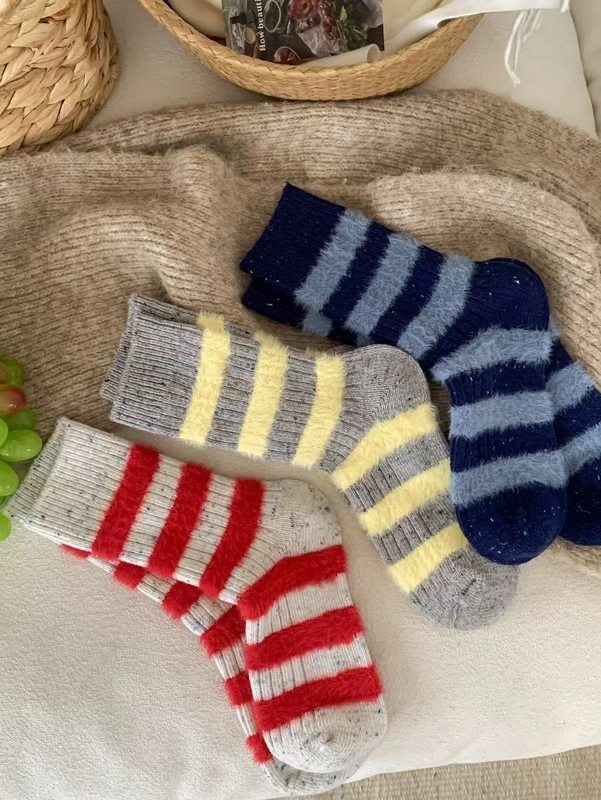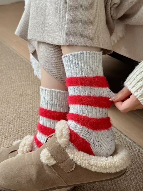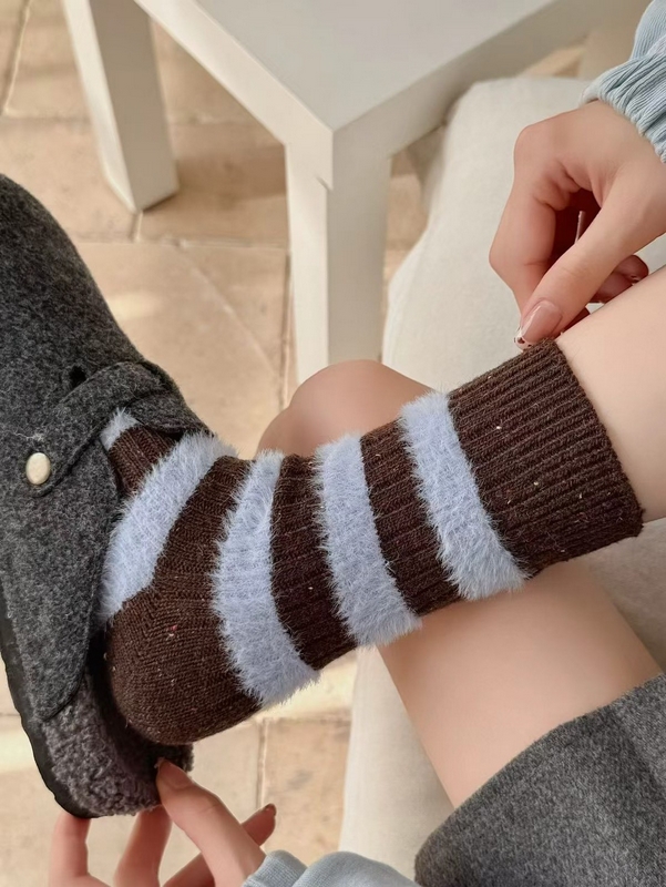 H1305-條紋水貂絨羊毛襪