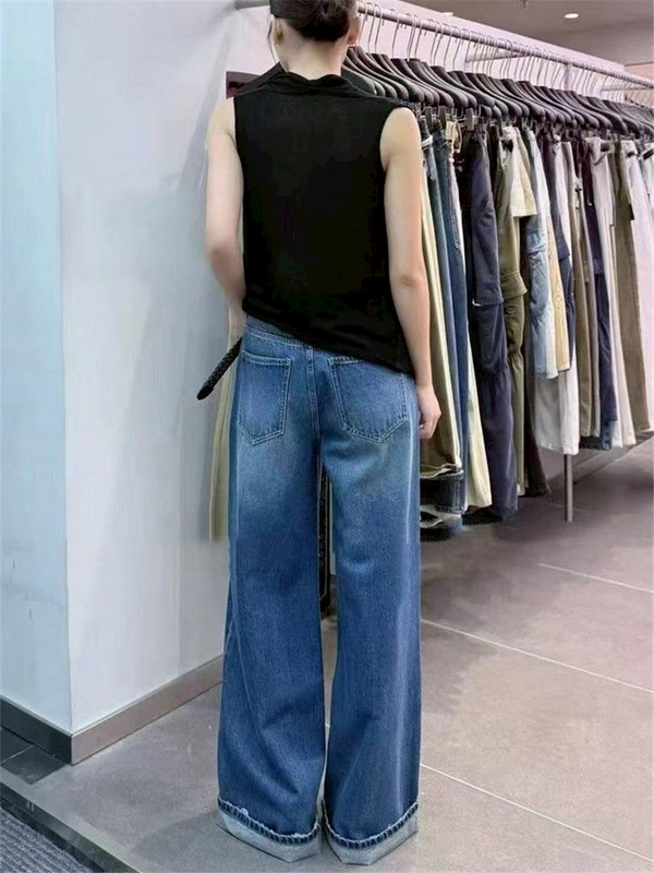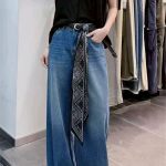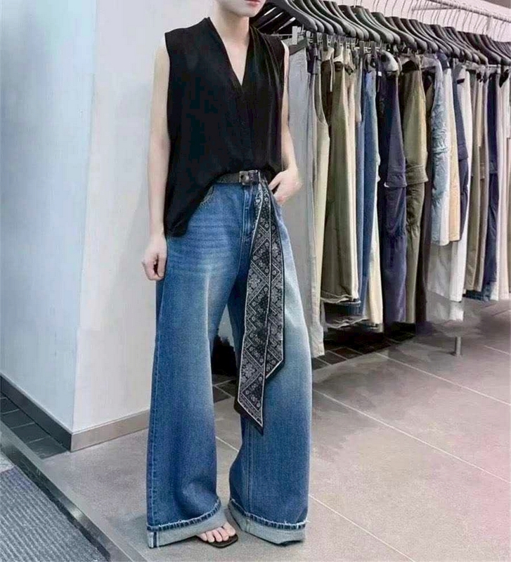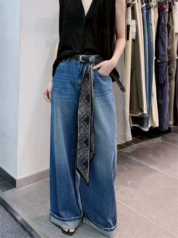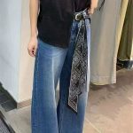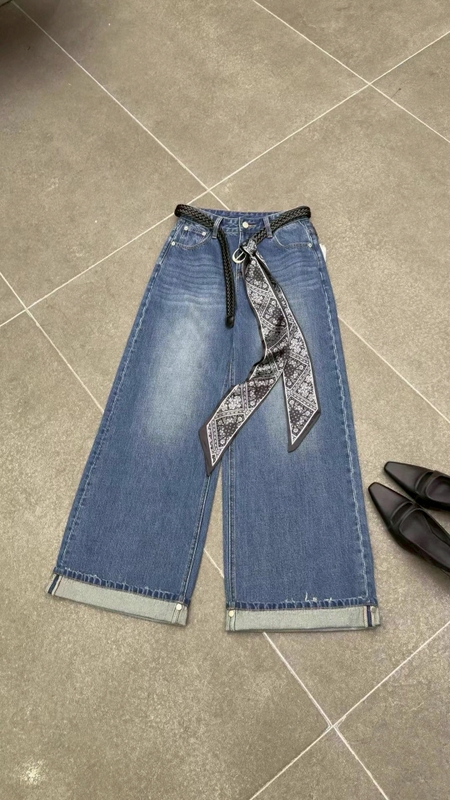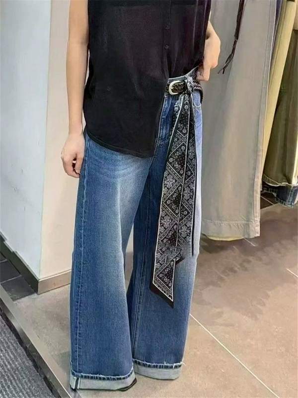 / N3468-皮帶絲巾刷色直筒寬褲