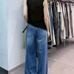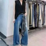 N3468-皮帶絲巾刷色直筒寬褲 數量