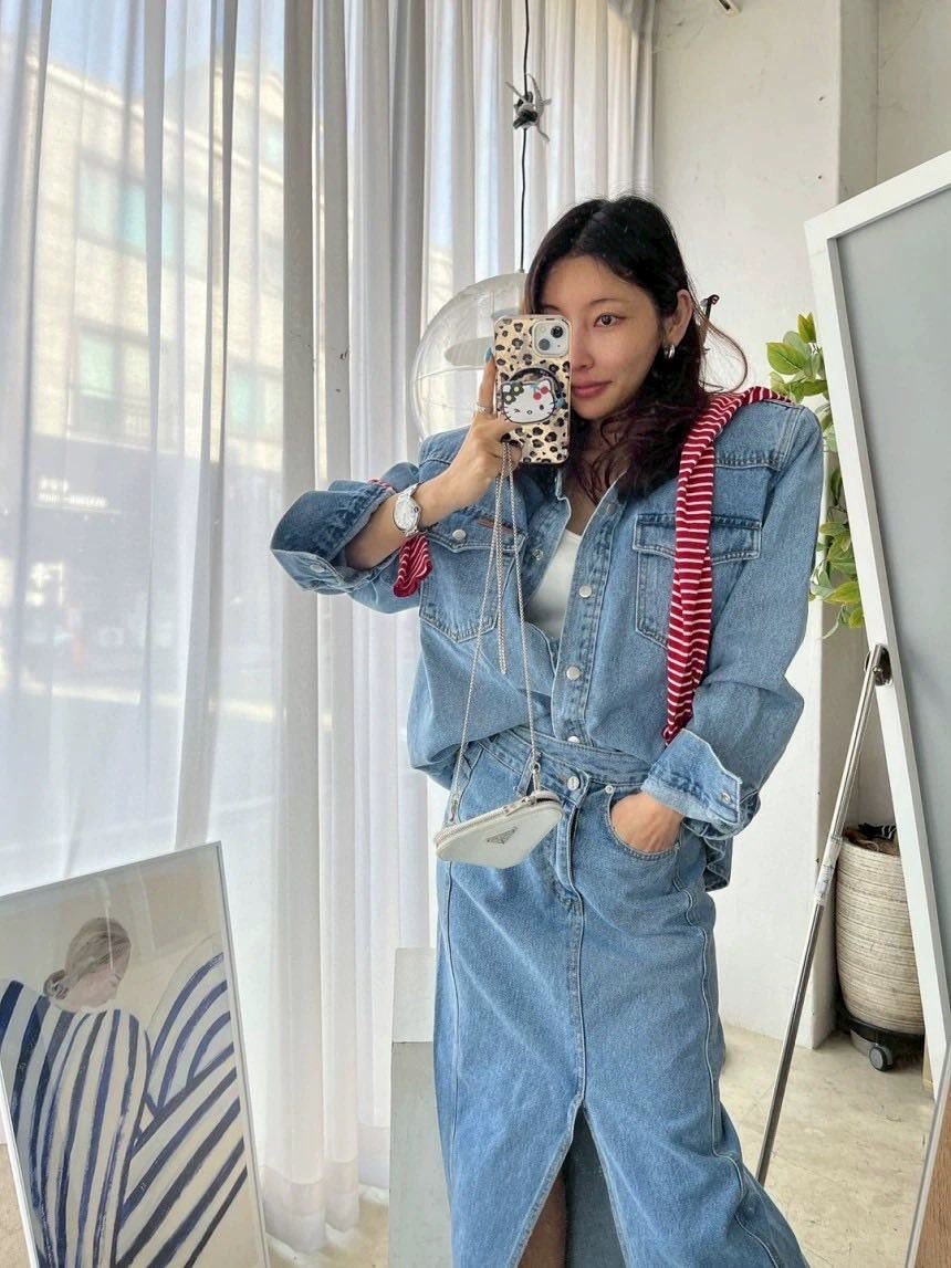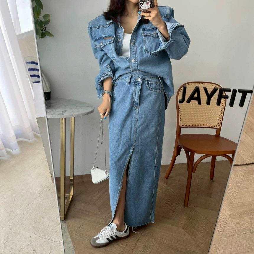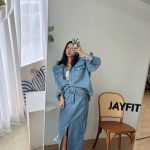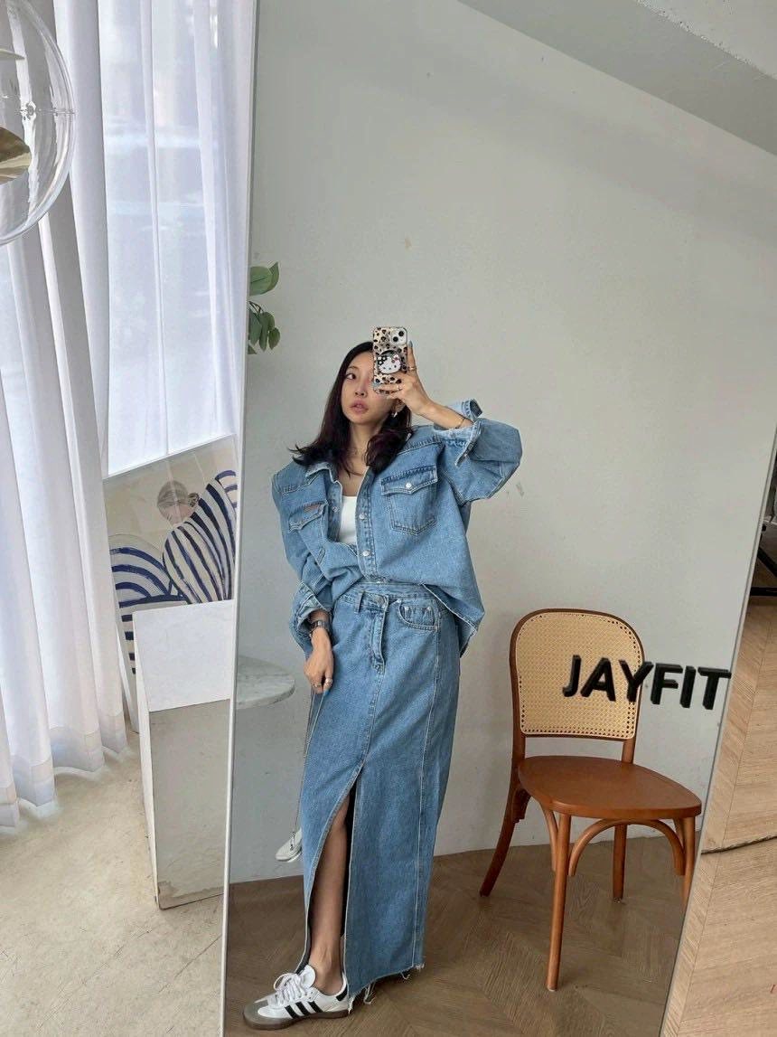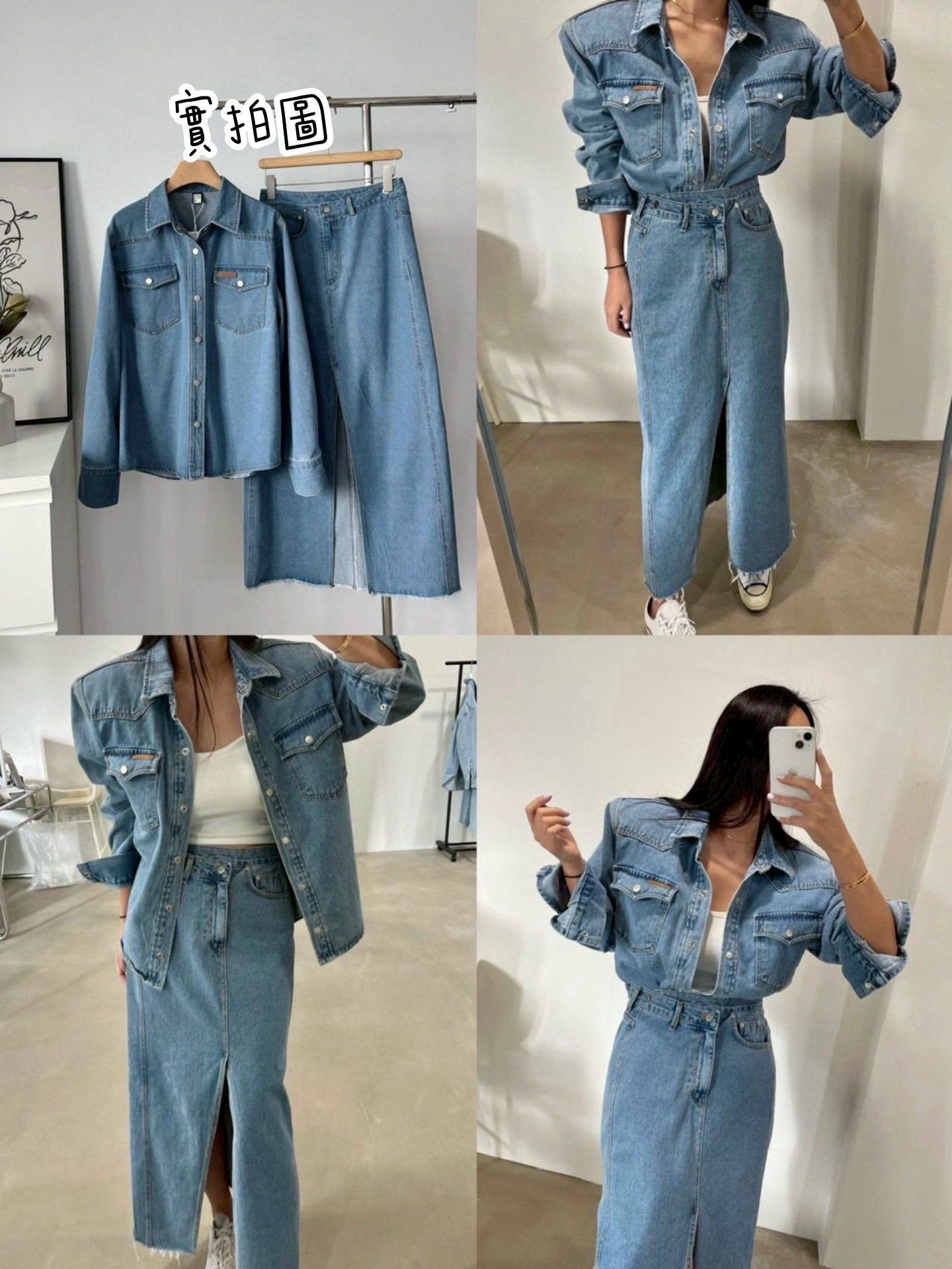 牛仔襯衫+開叉牛仔裙整套賣