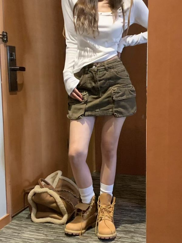 N3580-韓國工裝水洗牛仔褲裙 數量