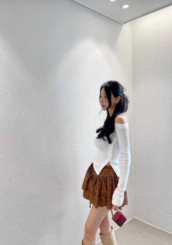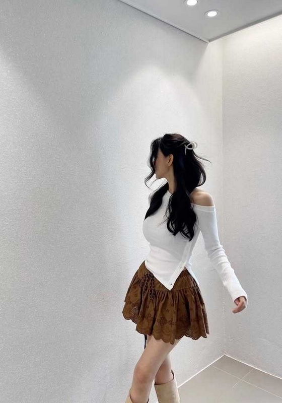 / N3623-韓國坑條開叉露肩衣