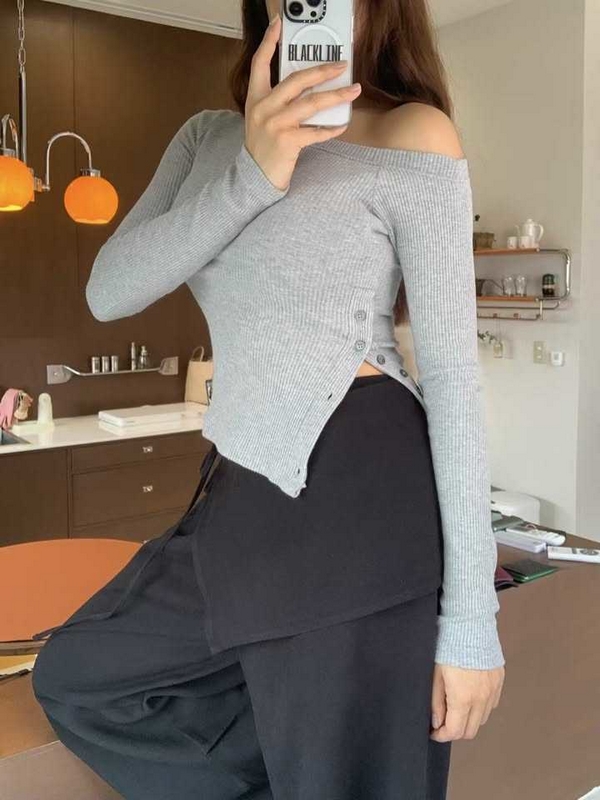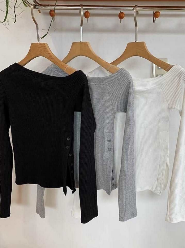 N3623-韓國坑條開叉露肩衣 數量