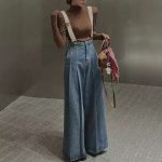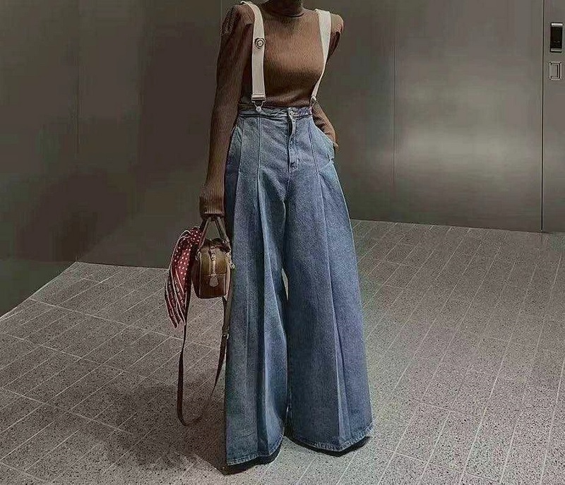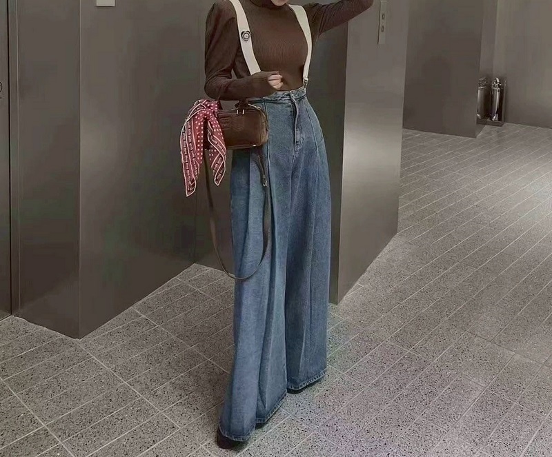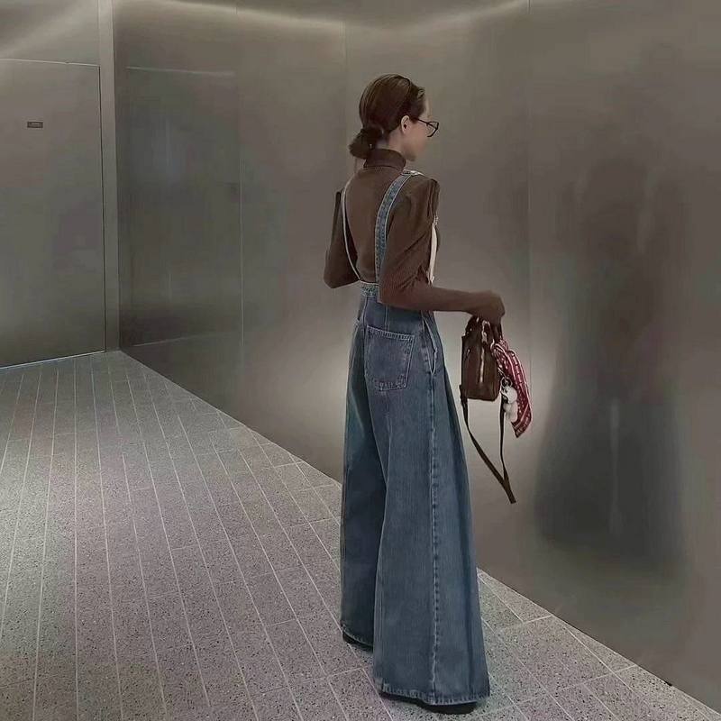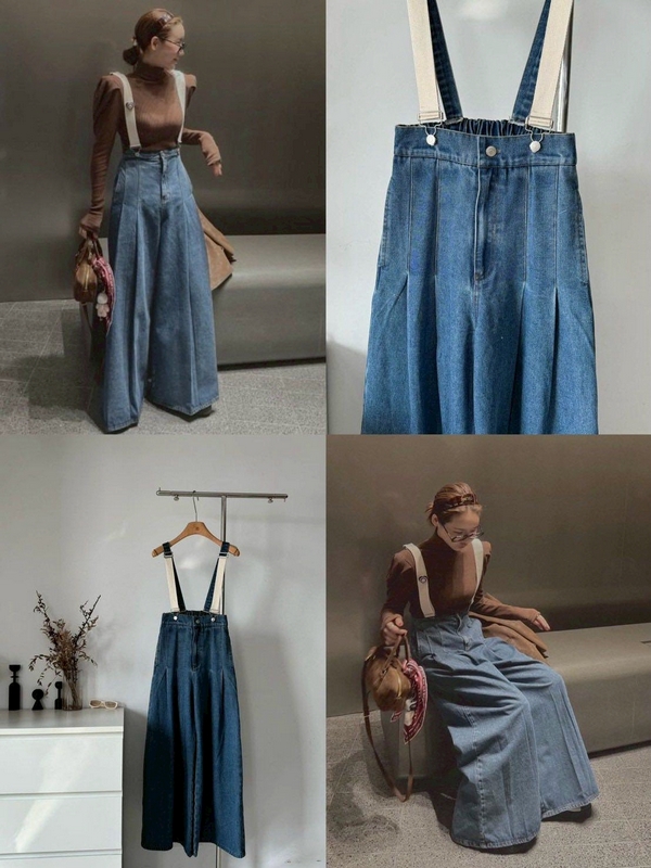 N3636-時髦吊帶牛仔寬褲