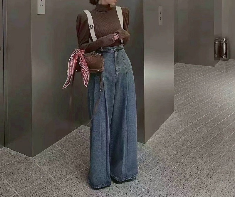 寬鬆牛仔打摺造型