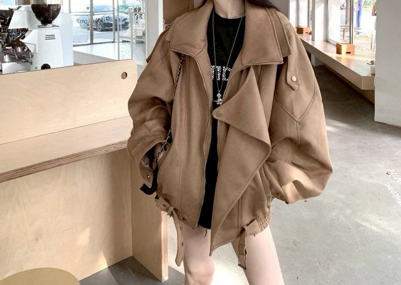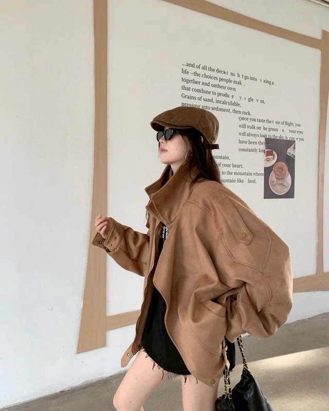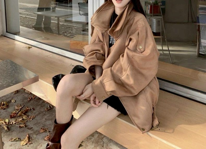 N3701-雙層領麂皮絨質外套 數量