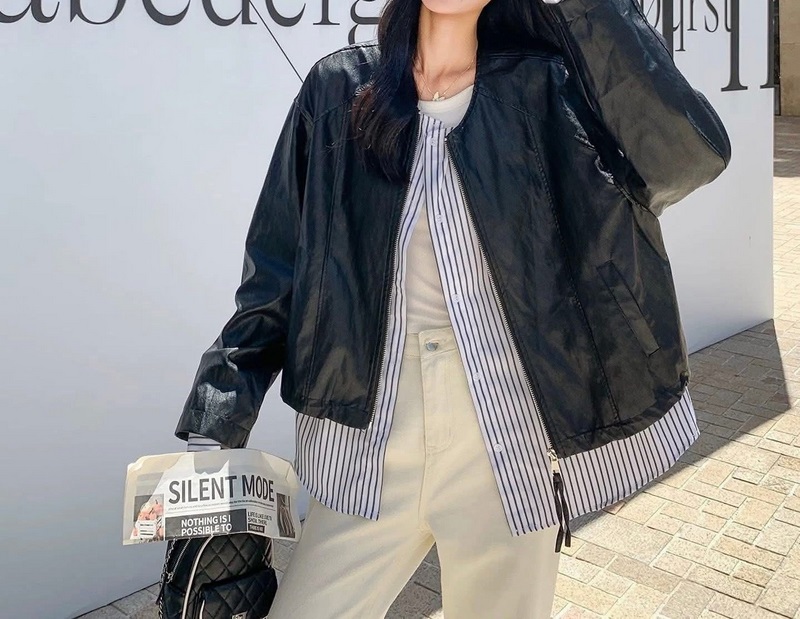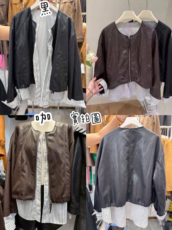 N3706-假兩件拼接造型皮外套 數量