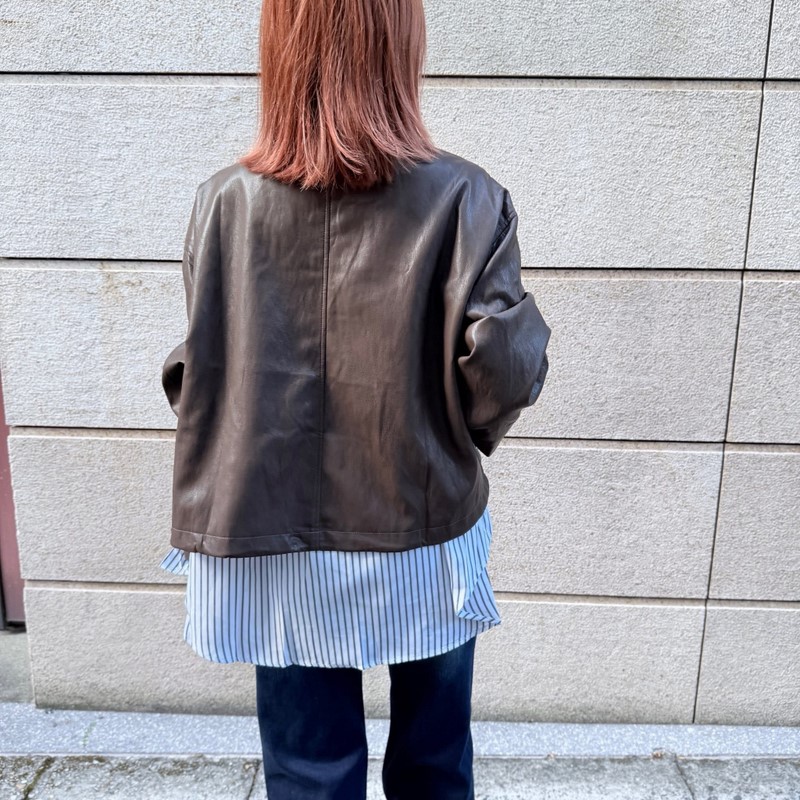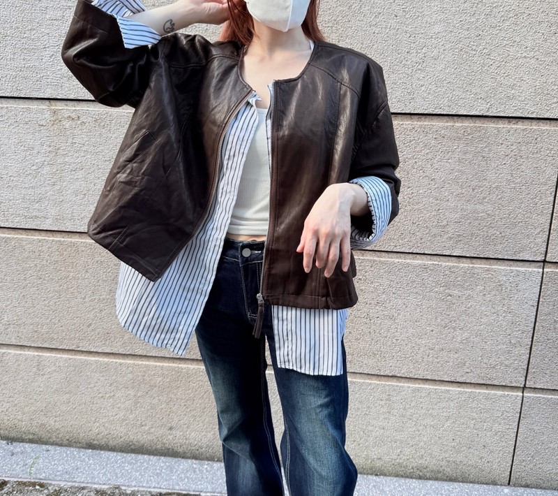 / N3706-假兩件拼接造型皮外套