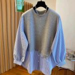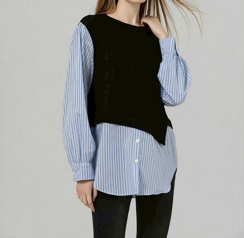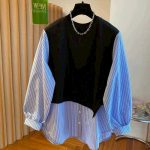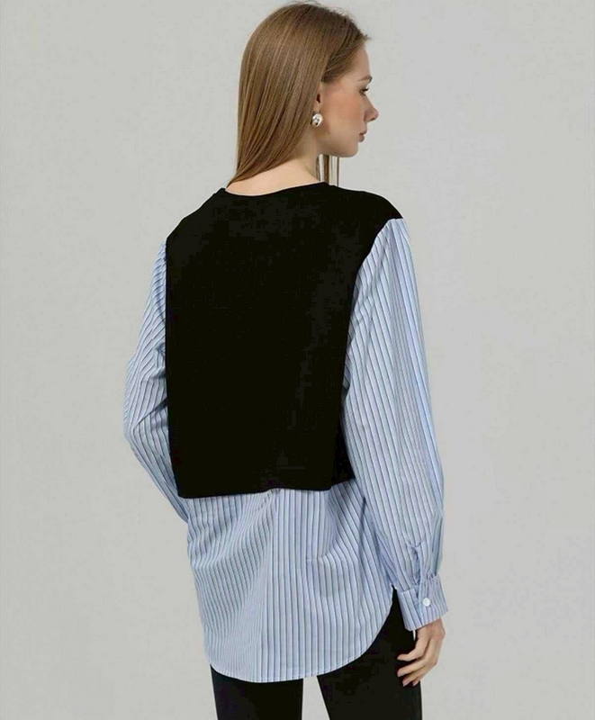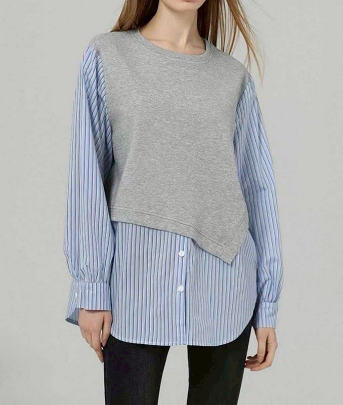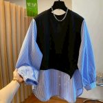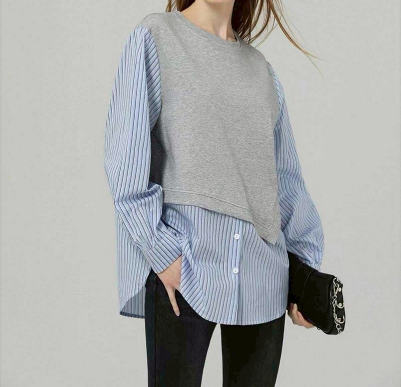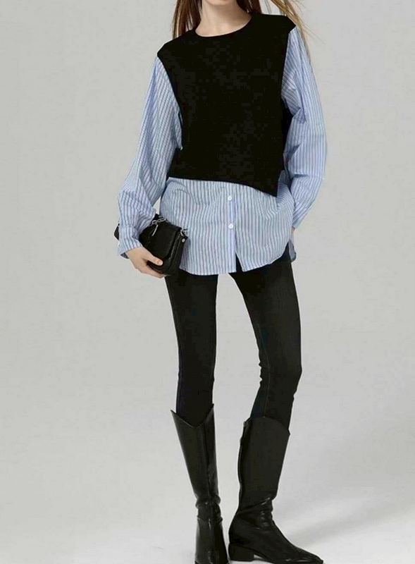 / N3710-假兩件拼接襯衫