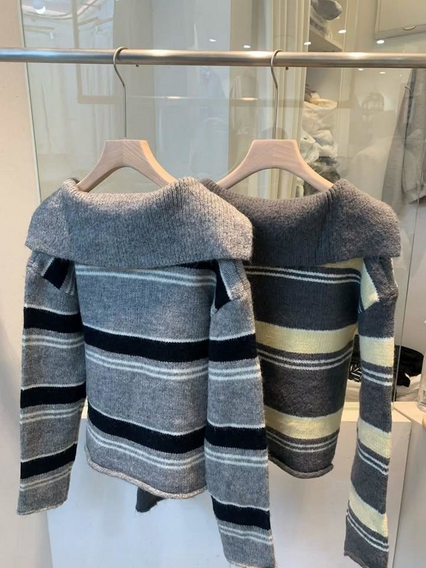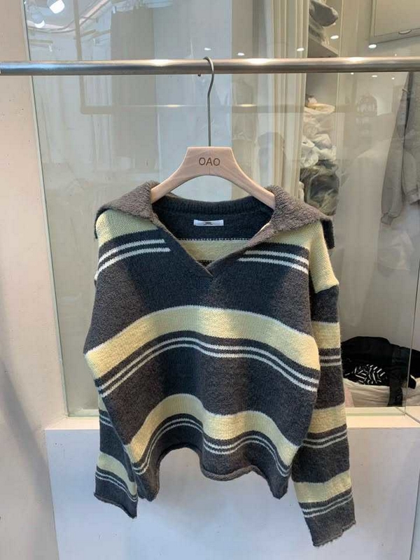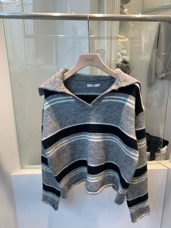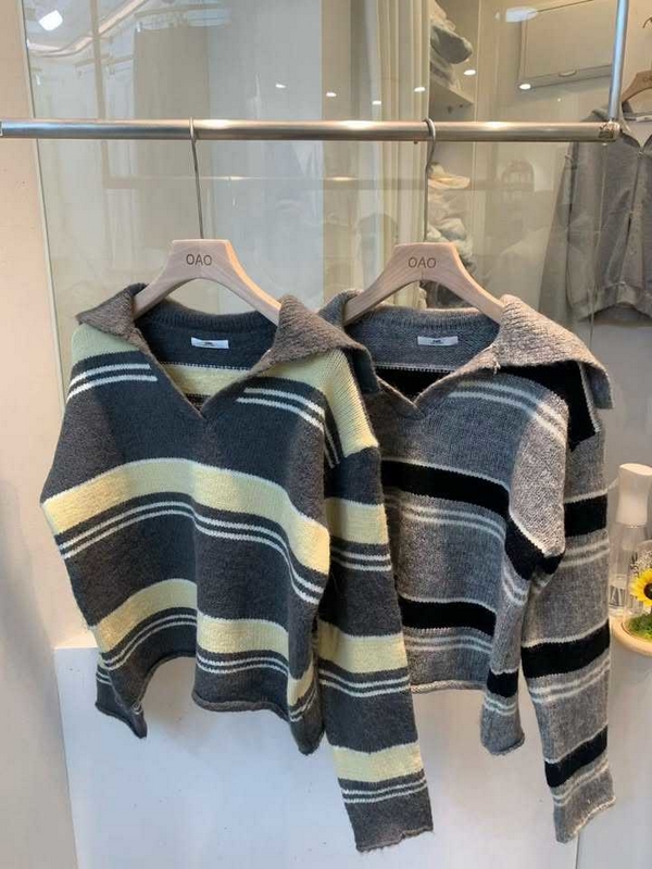 N3895-韓國翻領條紋毛衣 數量
