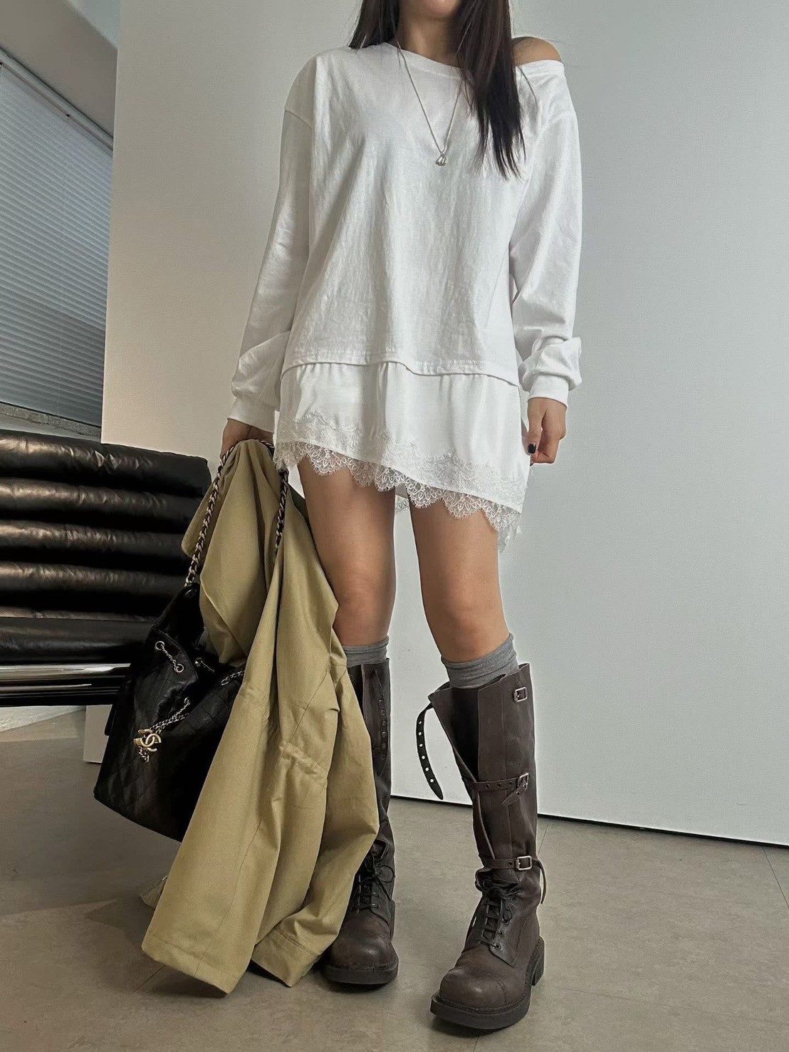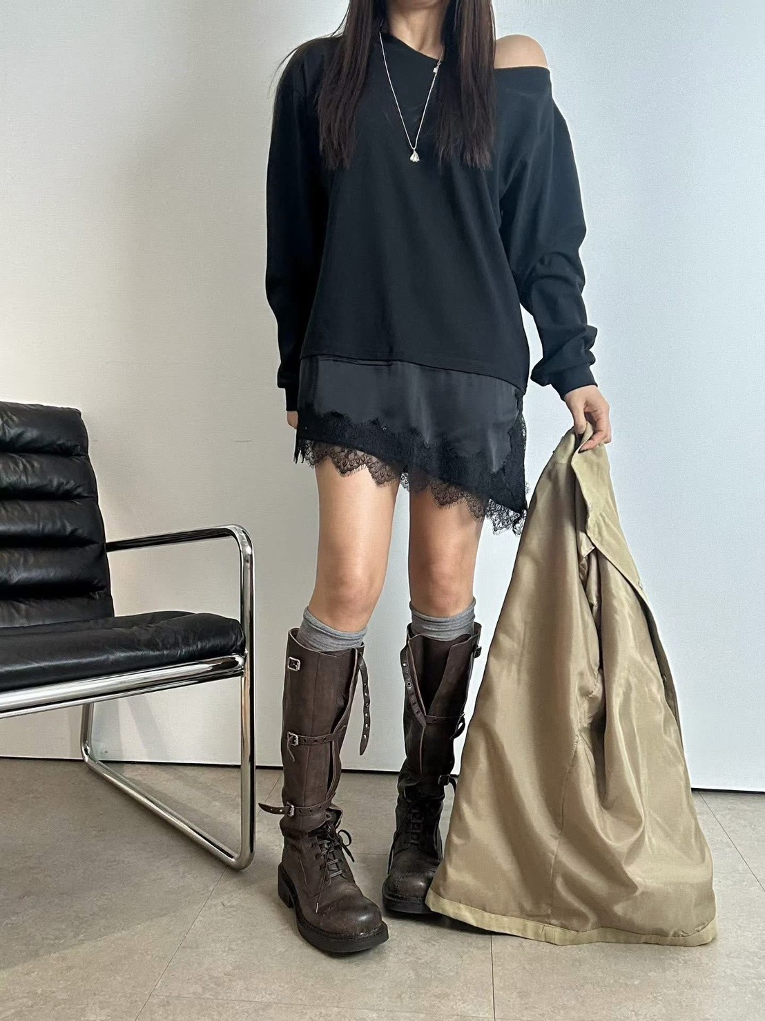 N4169-韓國大領拼接蕾絲造型衣 數量