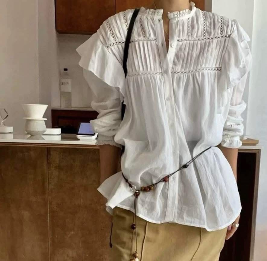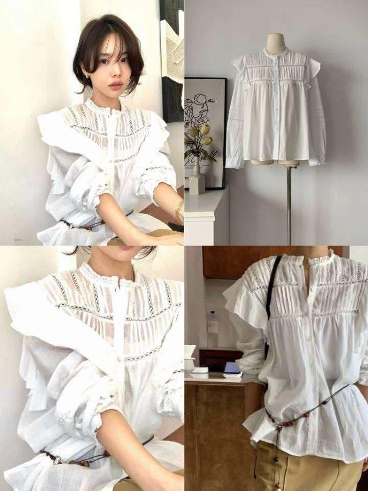 / N4178-奶油雲朵荷葉領衣