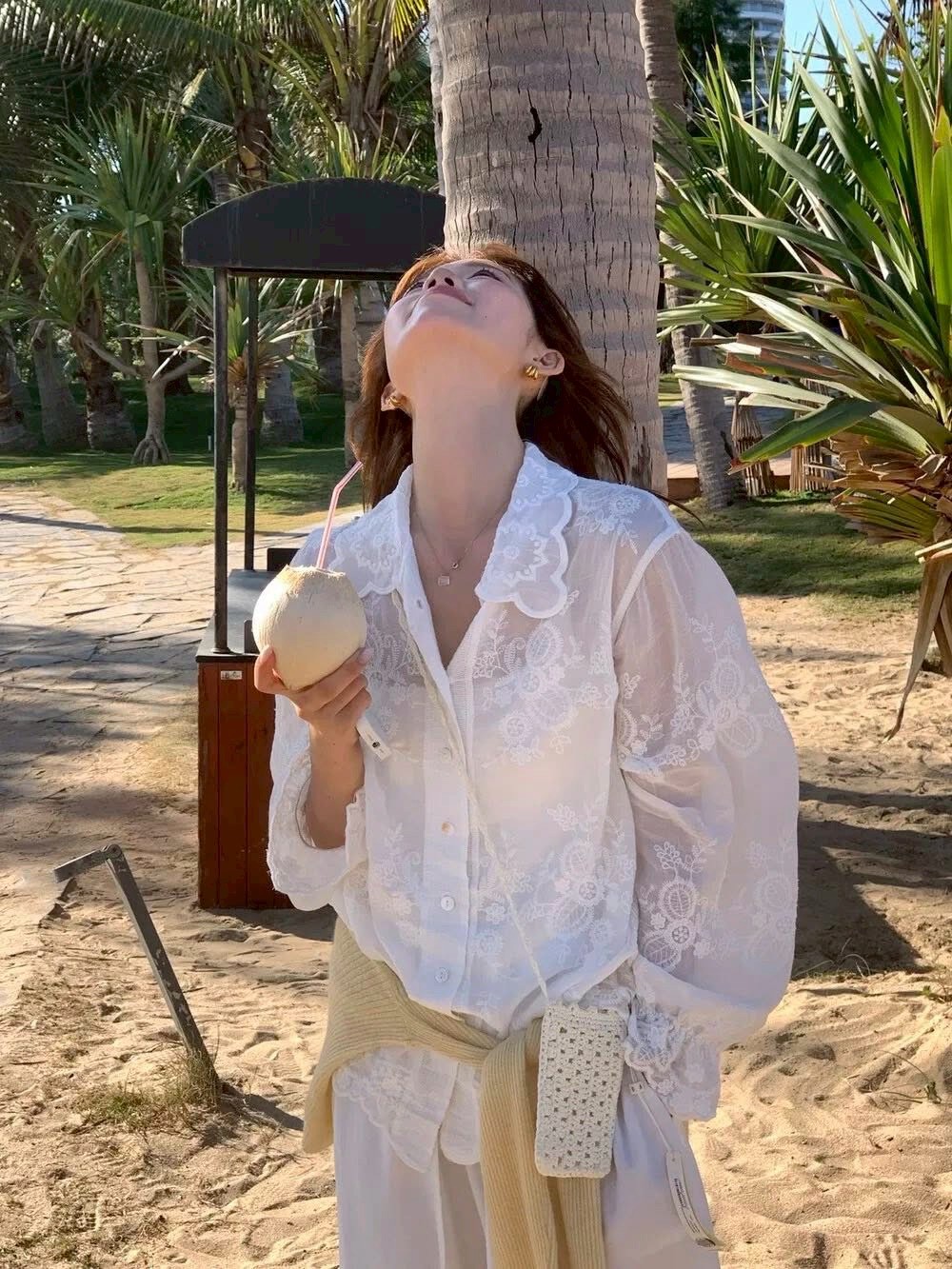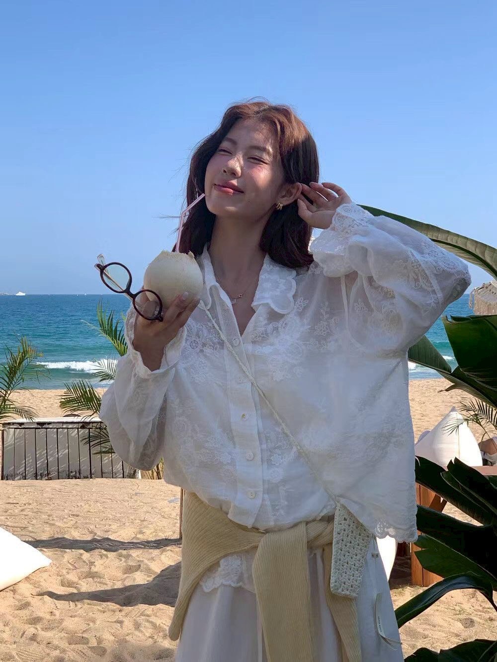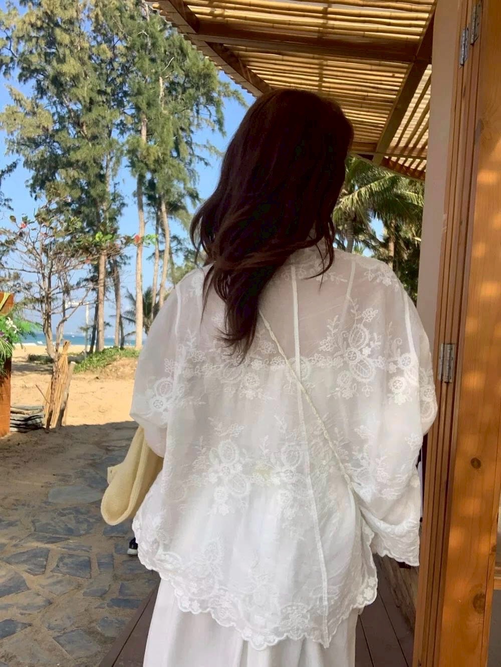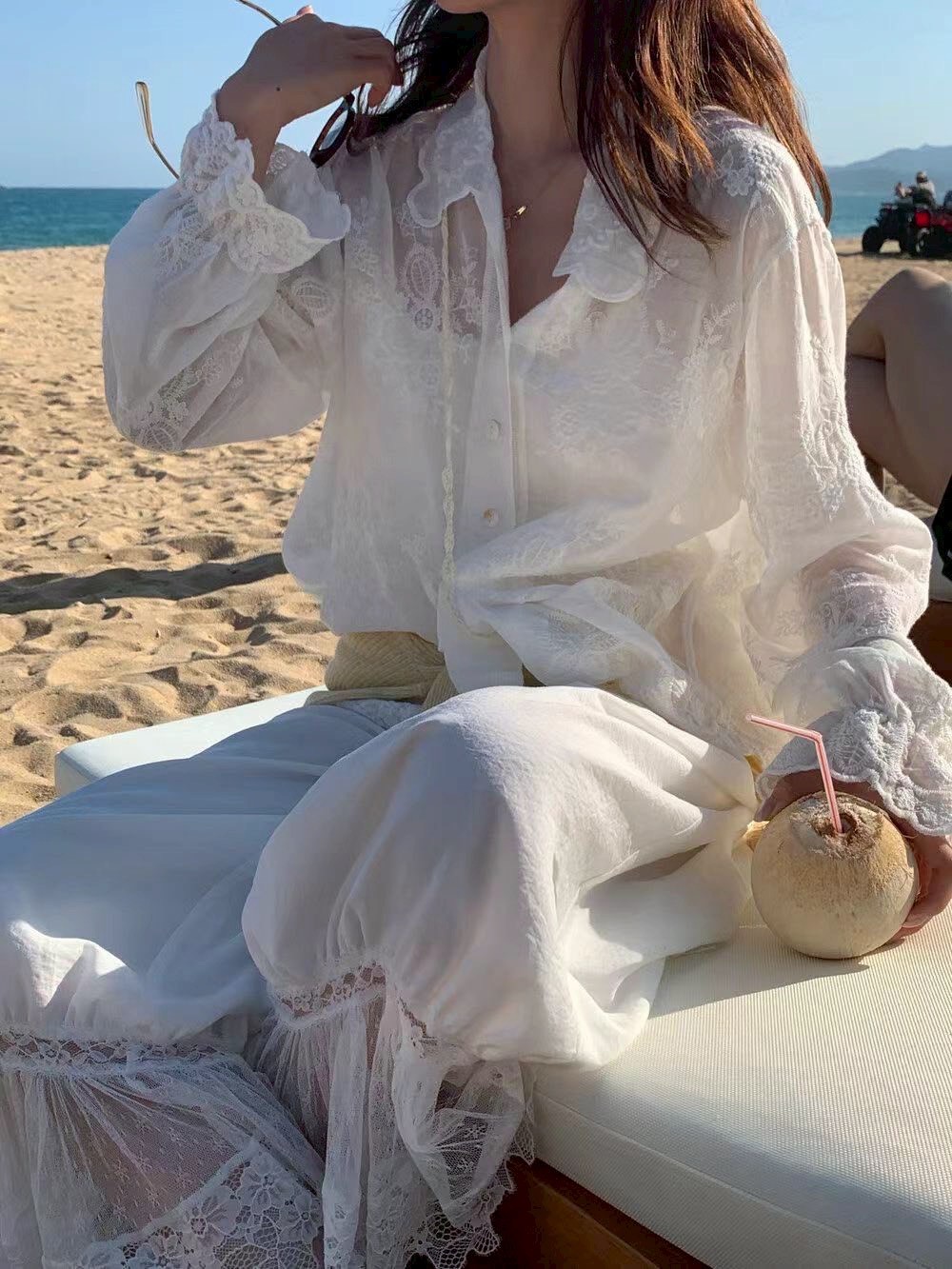 N4287-法式蕾絲拼接飄逸不規則洋裝