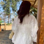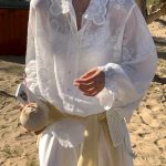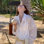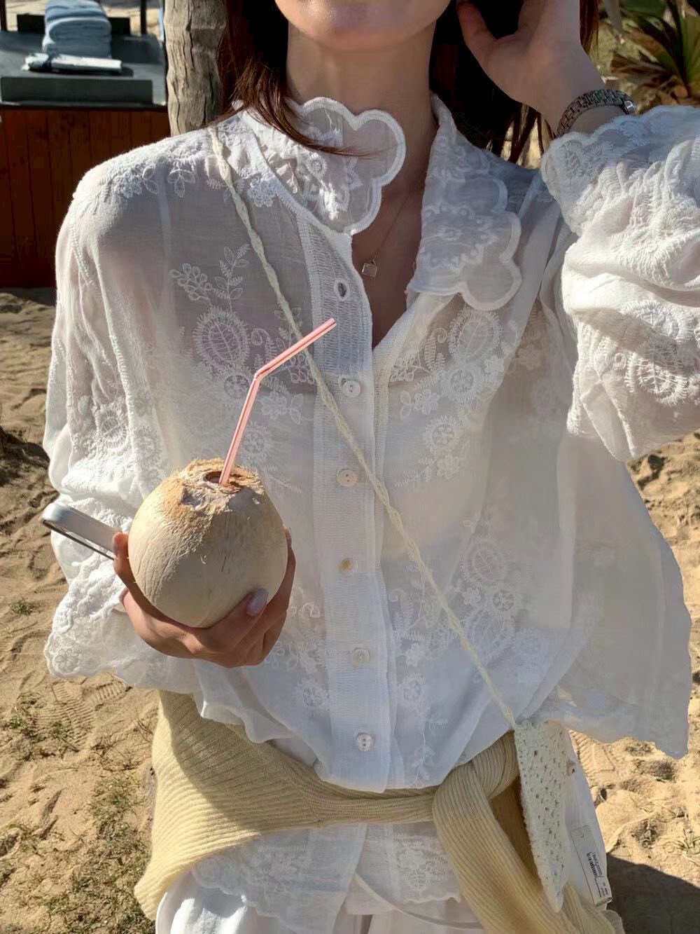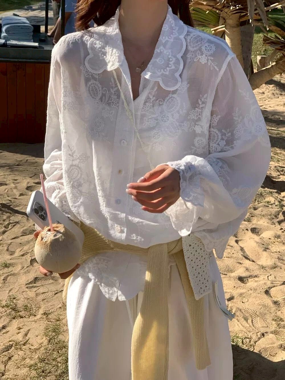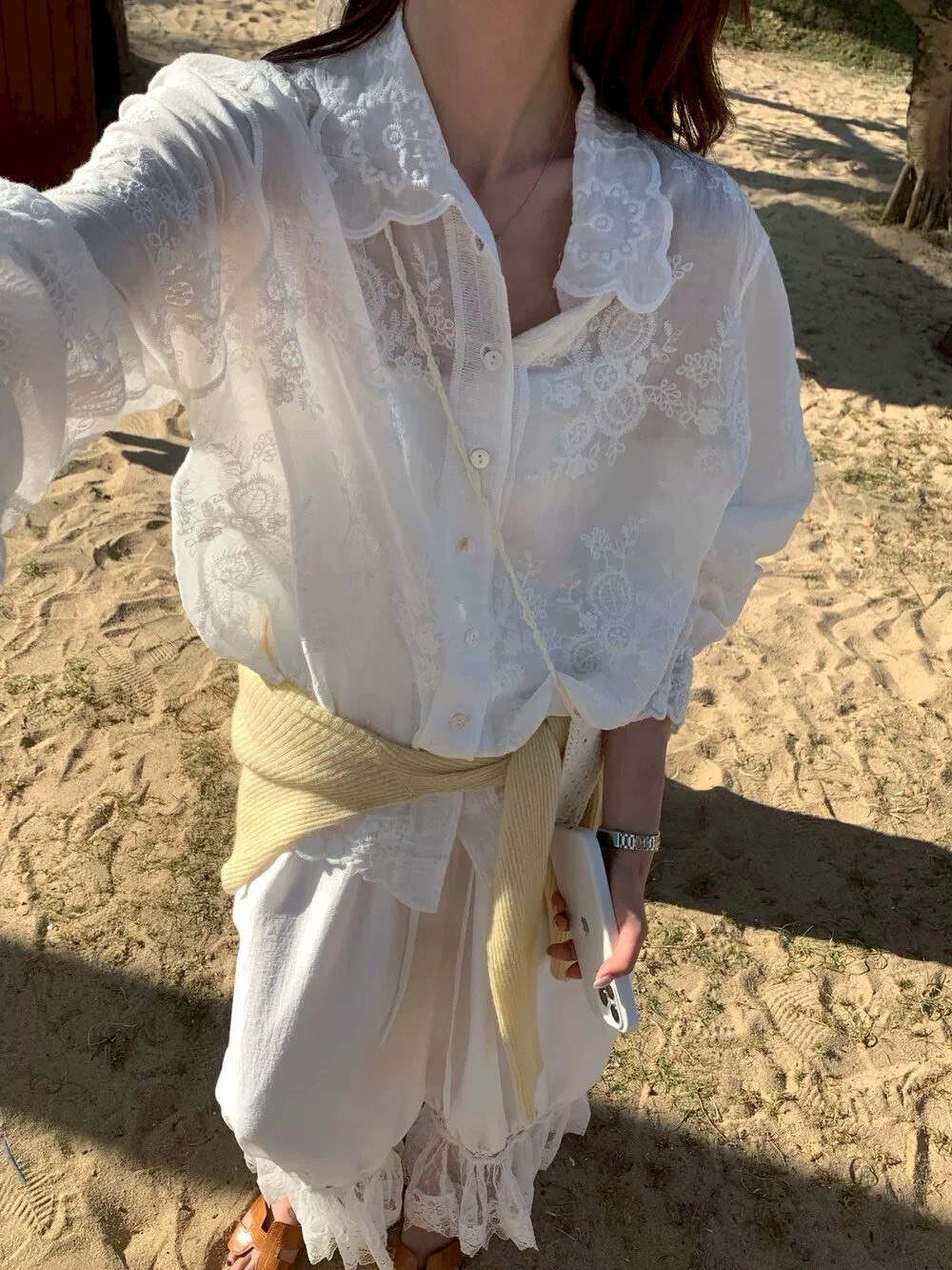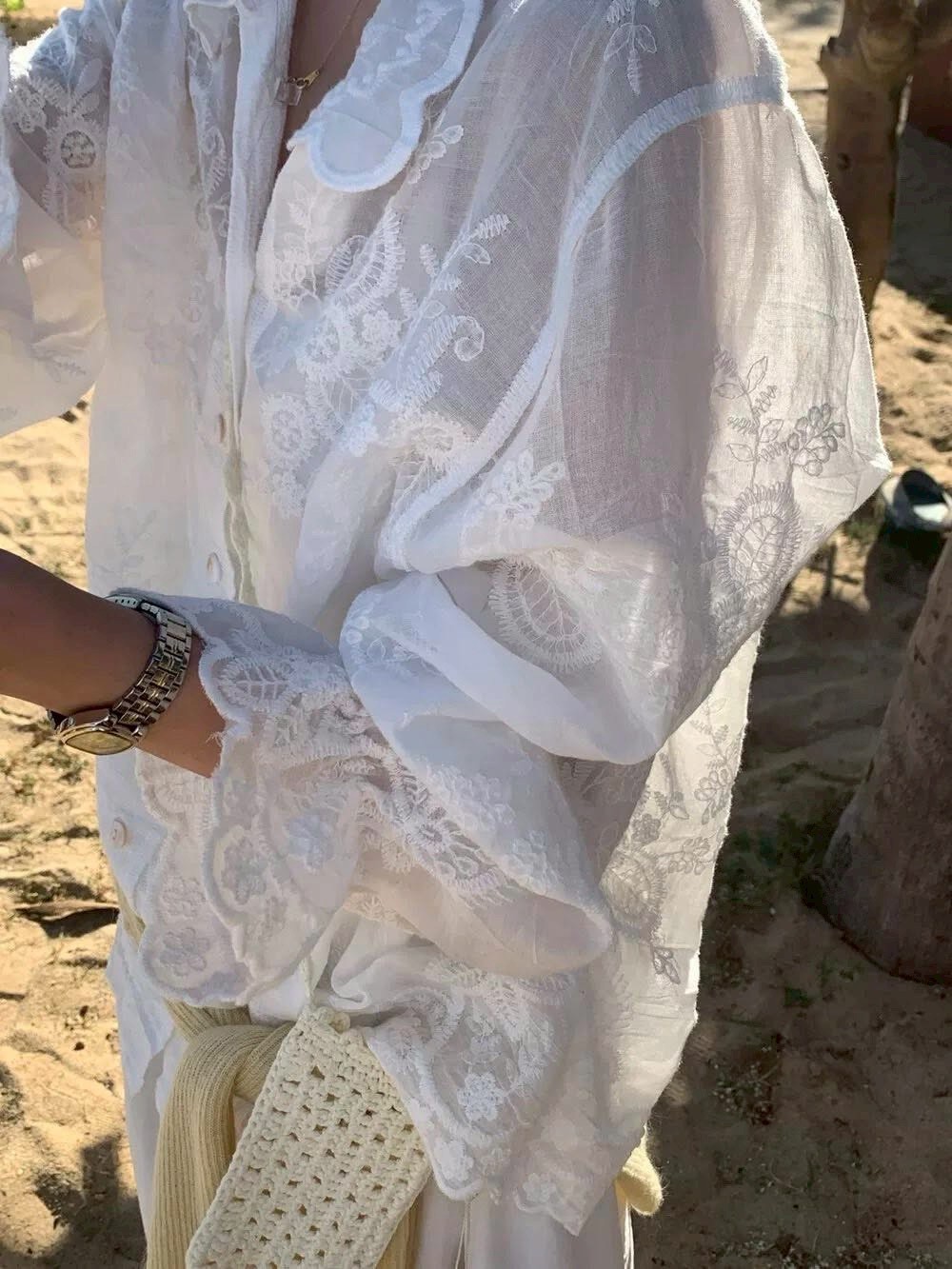 N4287-法式蕾絲拼接飄逸不規則洋裝