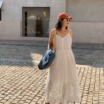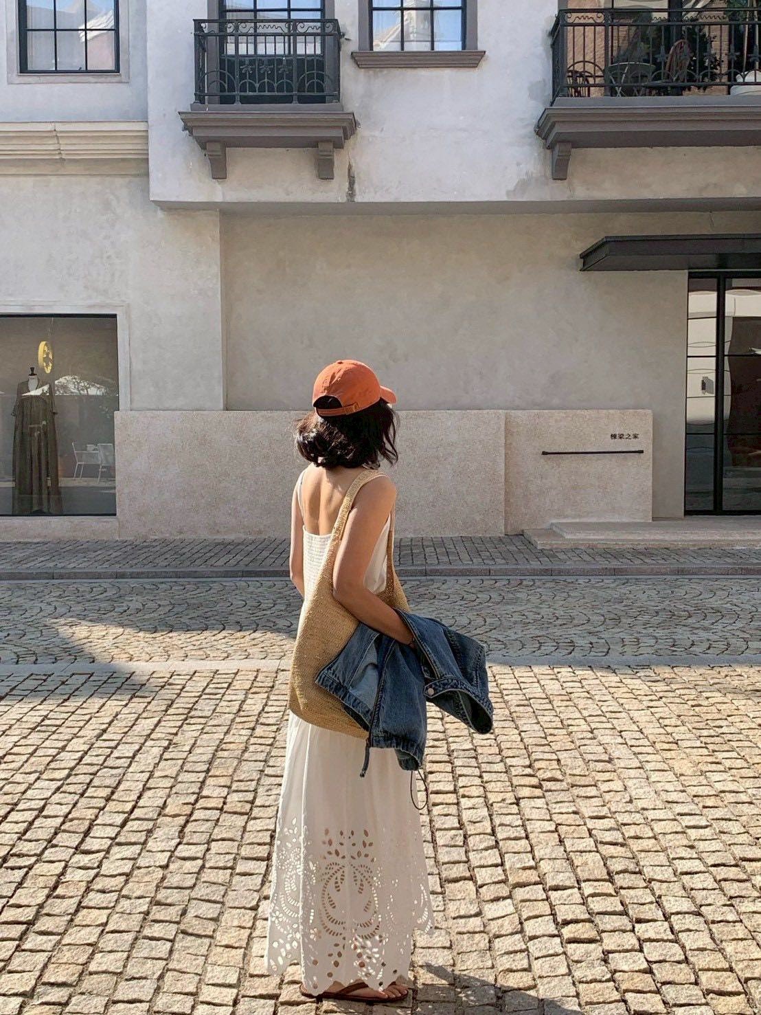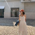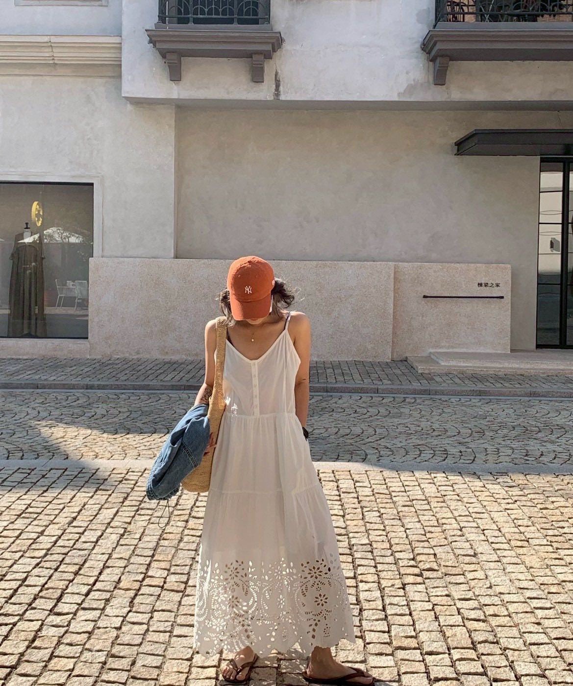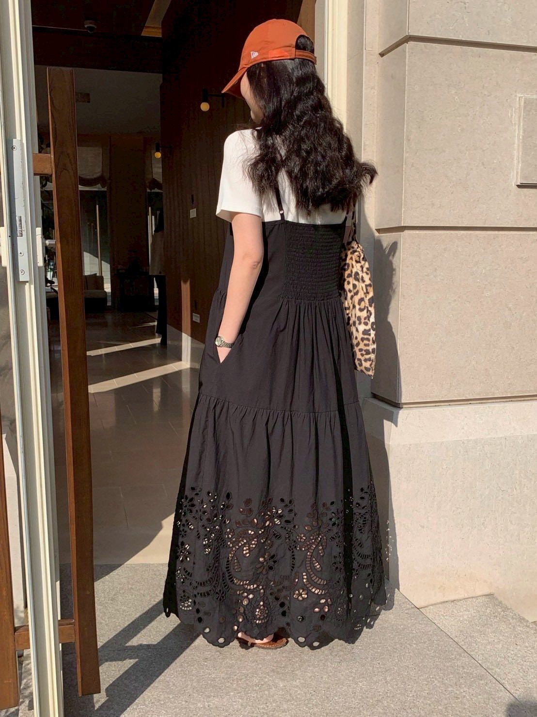 N4250-韓國緹花蕾絲細肩帶長洋裝 數量