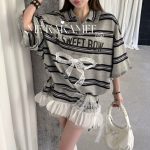 N4269-蕾絲蝴蝶拼接造型上衣 數量