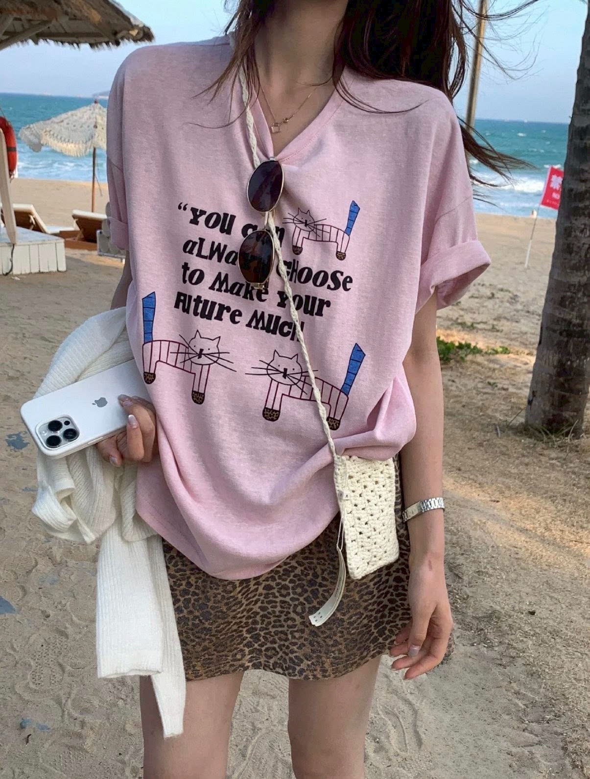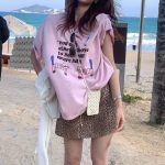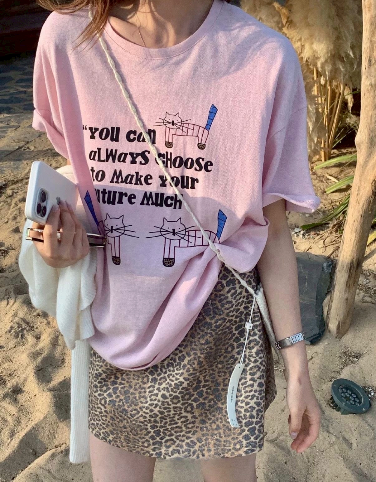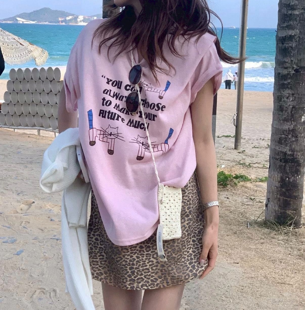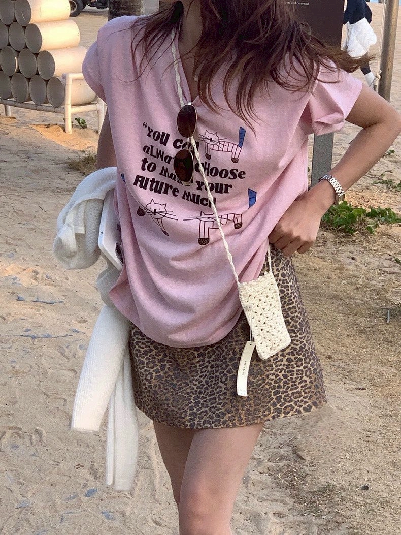 兩件式休閒套裝=粉嫩上衣加豹紋短裙!