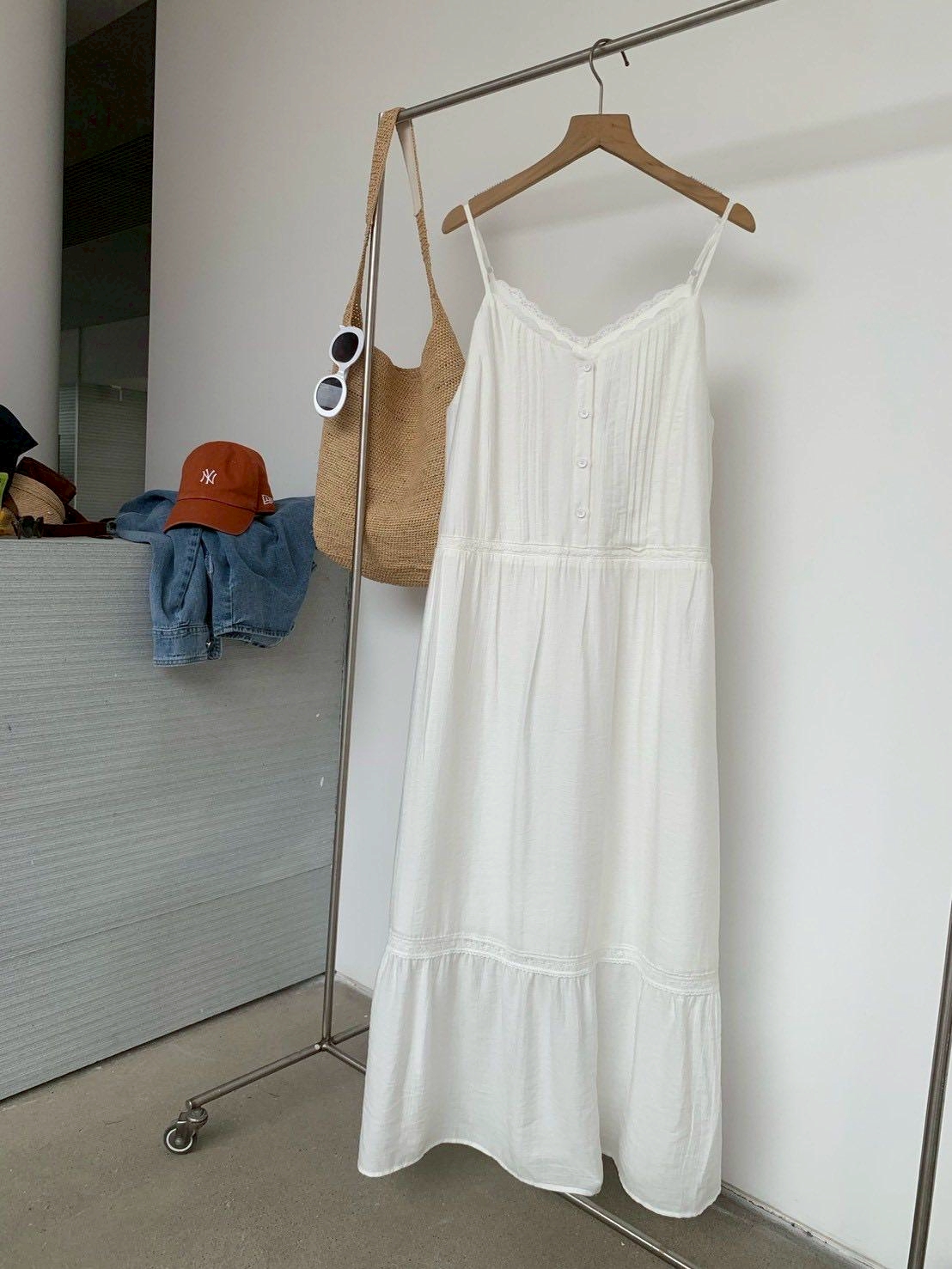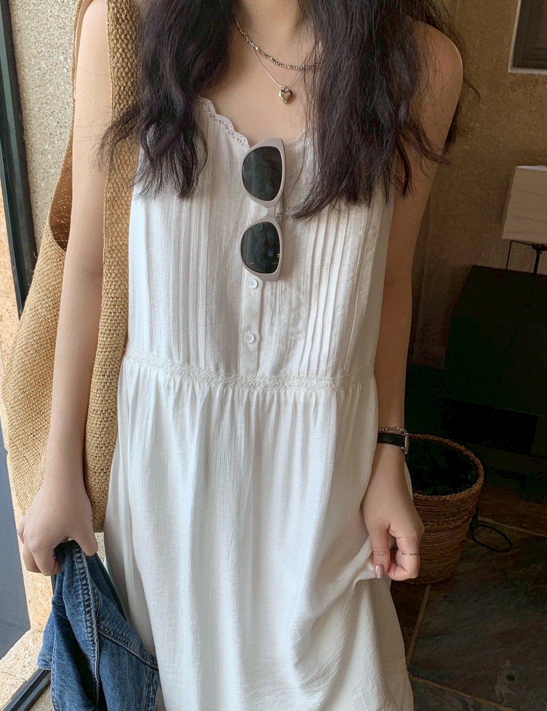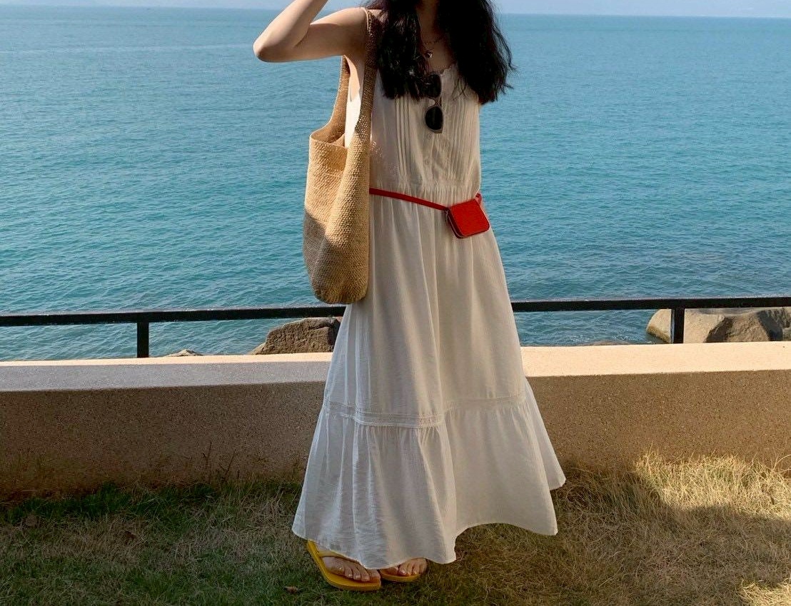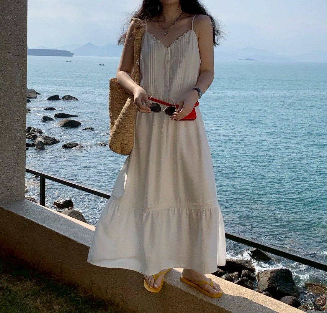 韓妞唯美浪漫細肩帶長洋裝