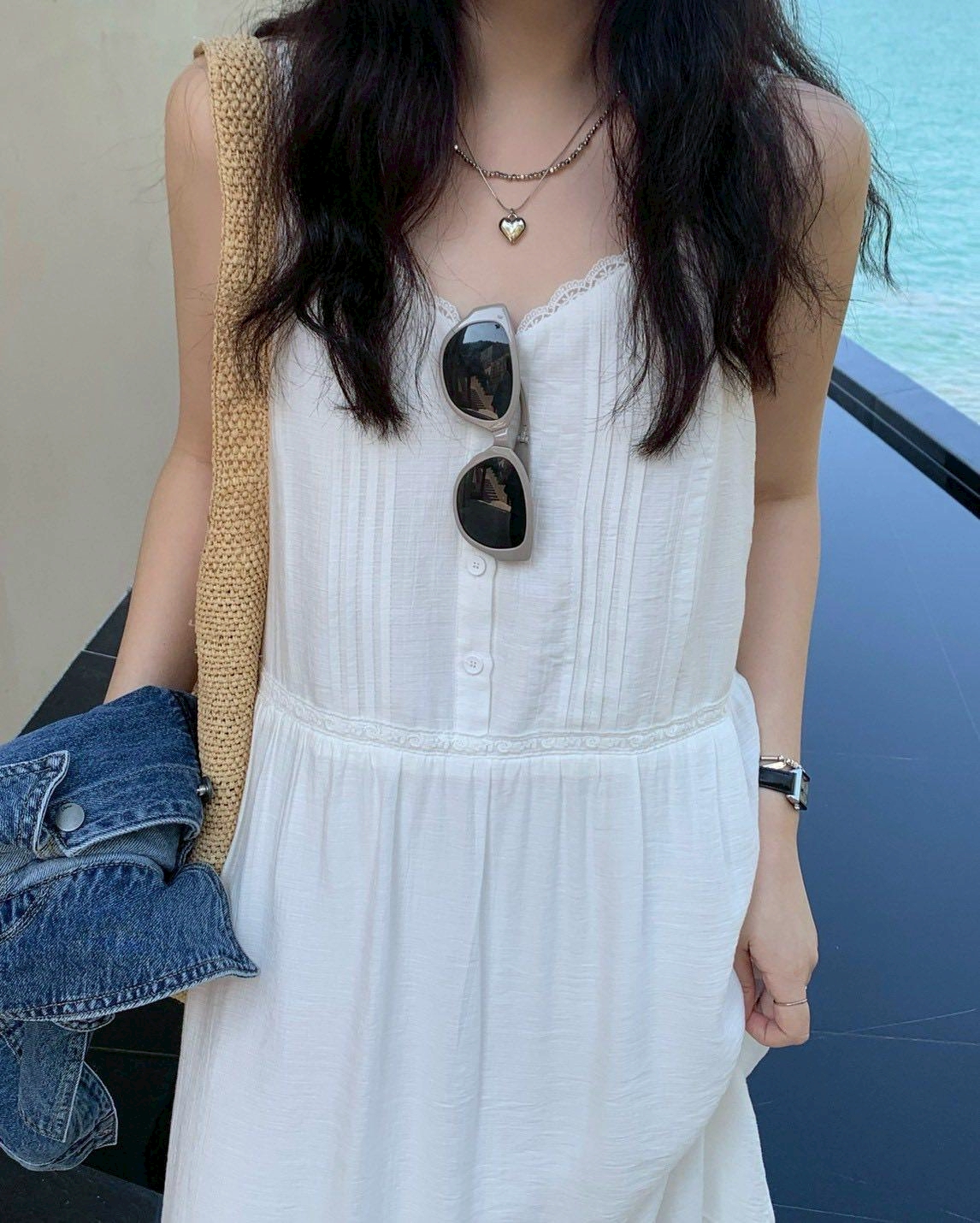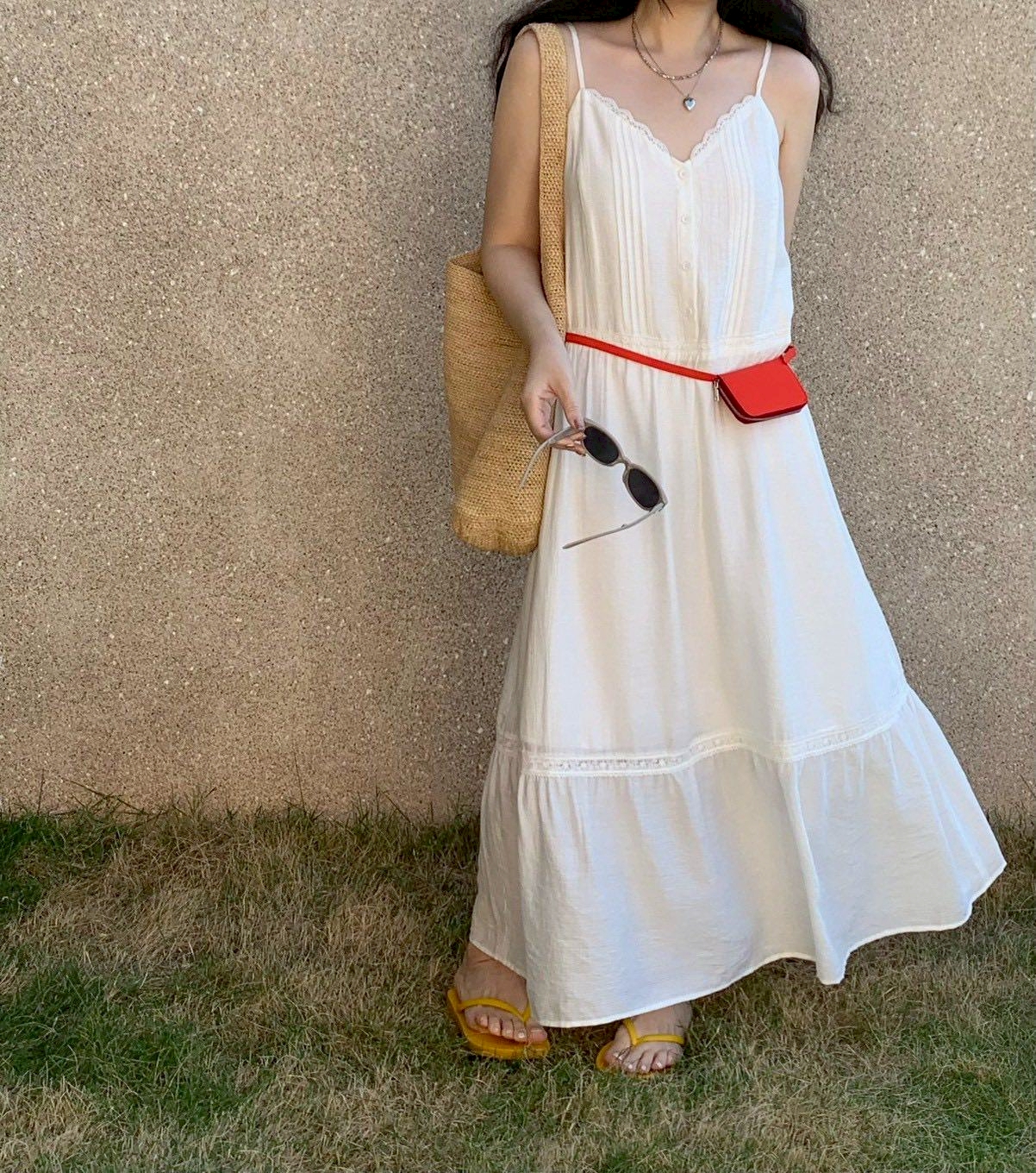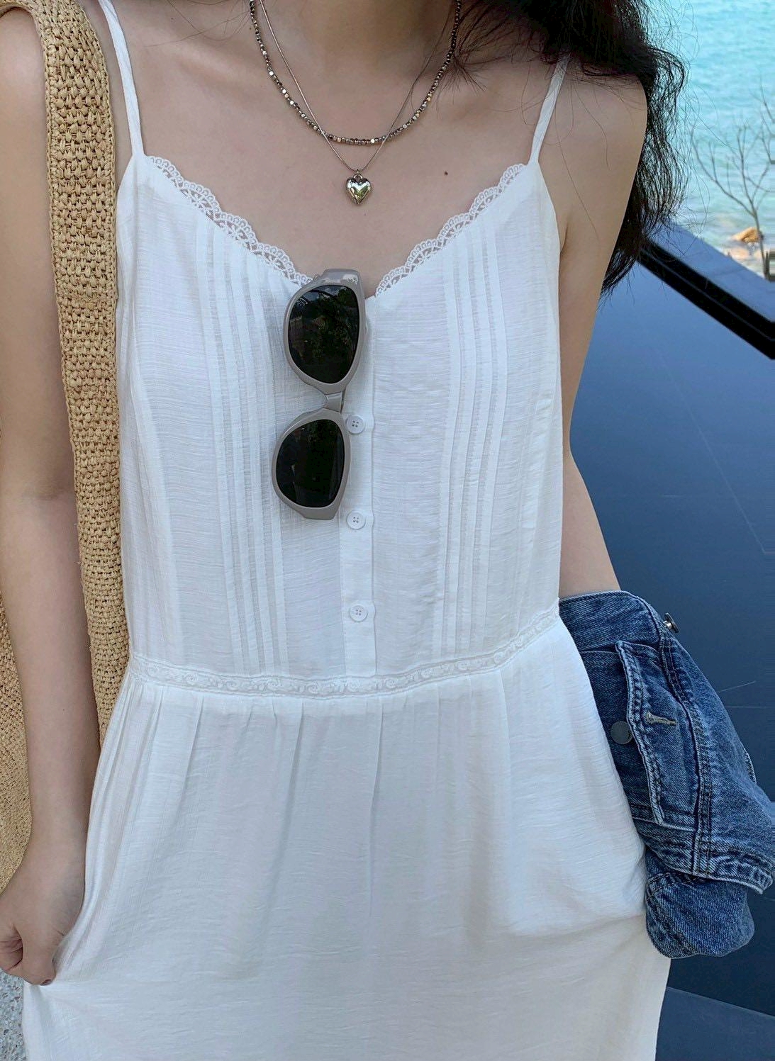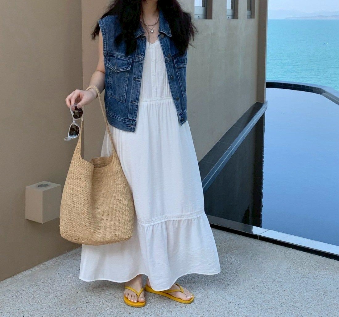 韓妞唯美浪漫細肩帶長洋裝