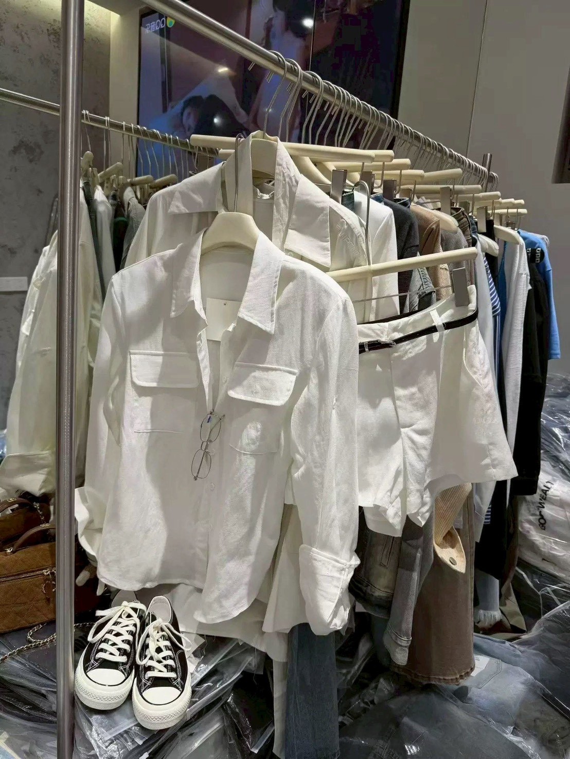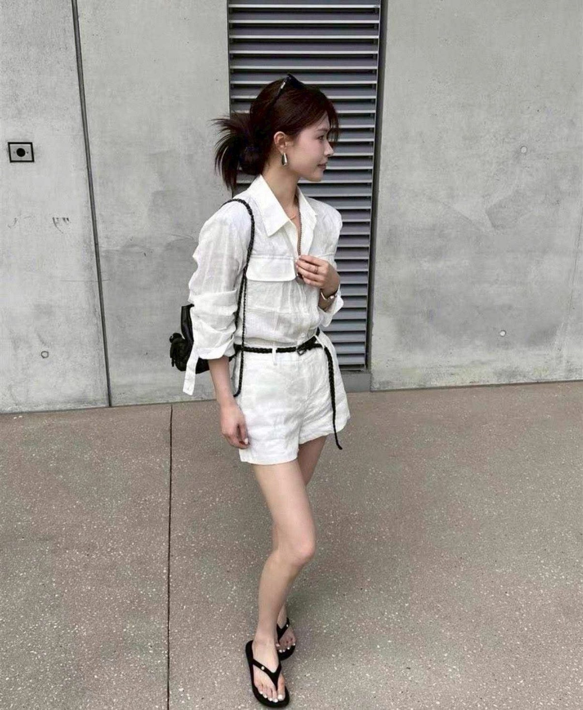 超有質感的襯衫版型配上同色短褲