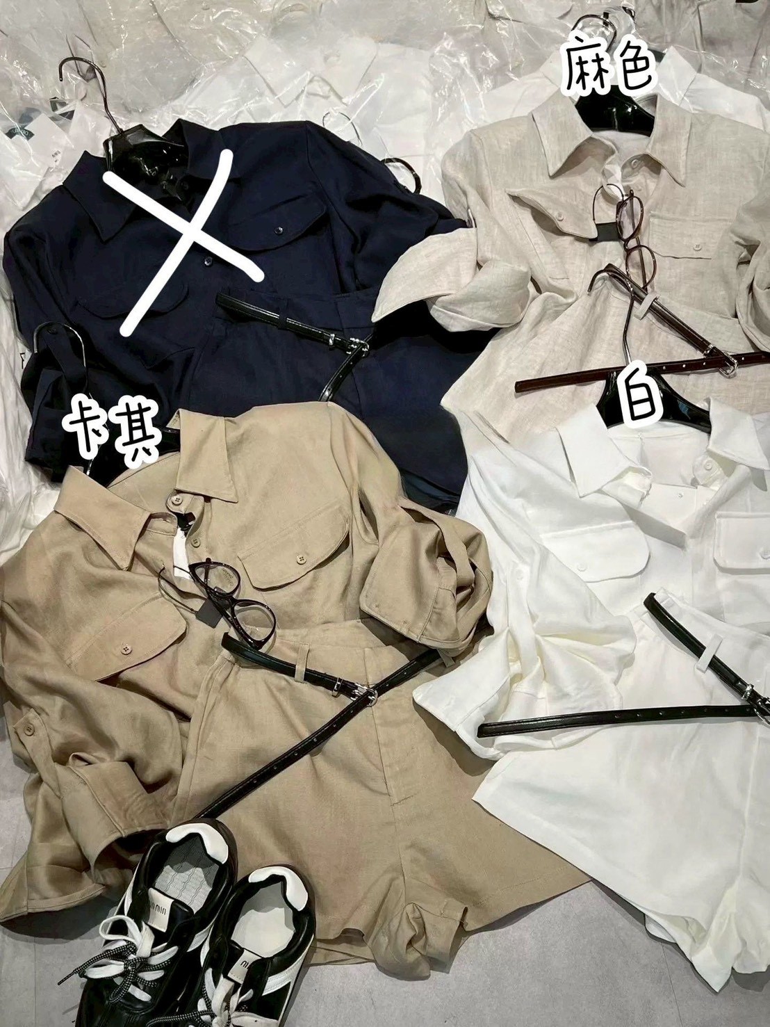 N4301-質感套裝(雙口袋襯衫+附皮帶短褲 ) 數量