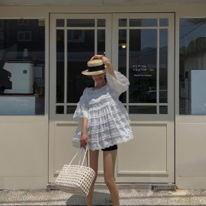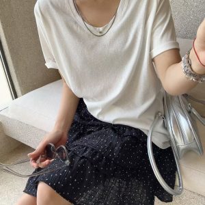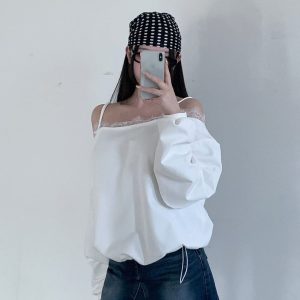 N4171-韓國細肩帶一字領蕾絲造型衣
